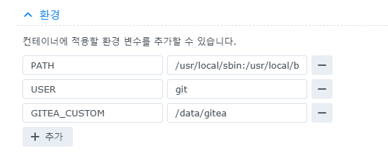 - 여기서 Gitea는 추가로 환경변수를 설정할 필요가 없으므로 스킵한다.