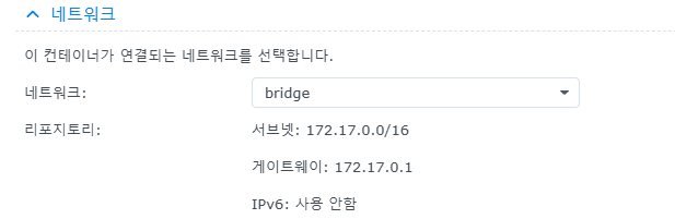 172.17.0.1:포트번호이렇게 설정해야한다. 도커가 Bridge 네트워크이기 때문에 도커의 게이트웨이가 바로 NAS의 IP주소를 가리키기 때문. 네트워크 기본 상식이다. - 만약 외부 서버에 DB가 있으면