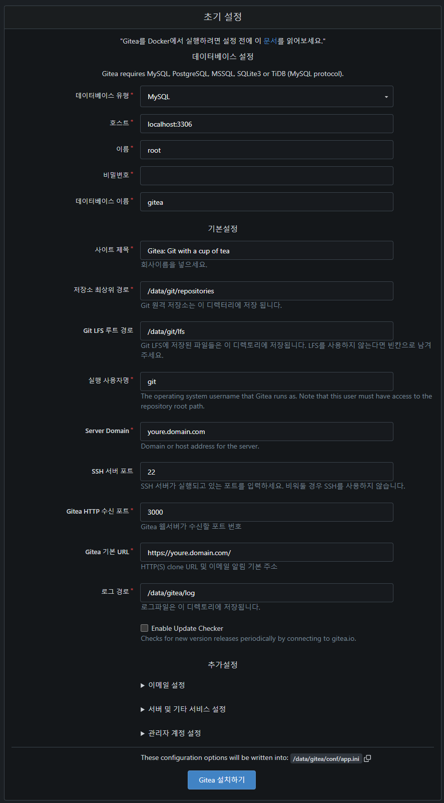 Gitea 초기 설정