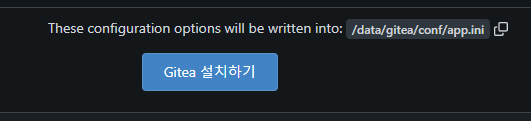 마지막에 Gitea 설치하기 버튼을 클릭하고 조금 기다리면 설치가 완료된다.