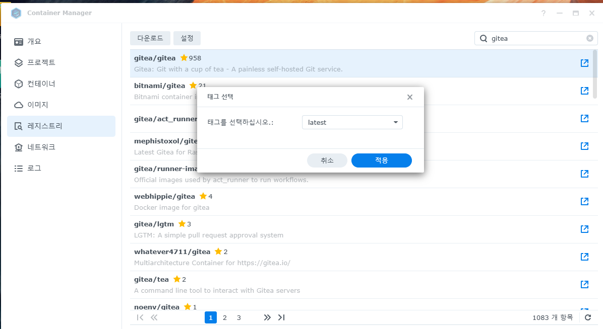Container Manager에서 Gitea 설치 🚀